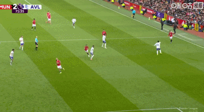 第71分钟,B费直塞再送助攻,库尼亚单刀得手,曼联2-1维拉再次取得领先!