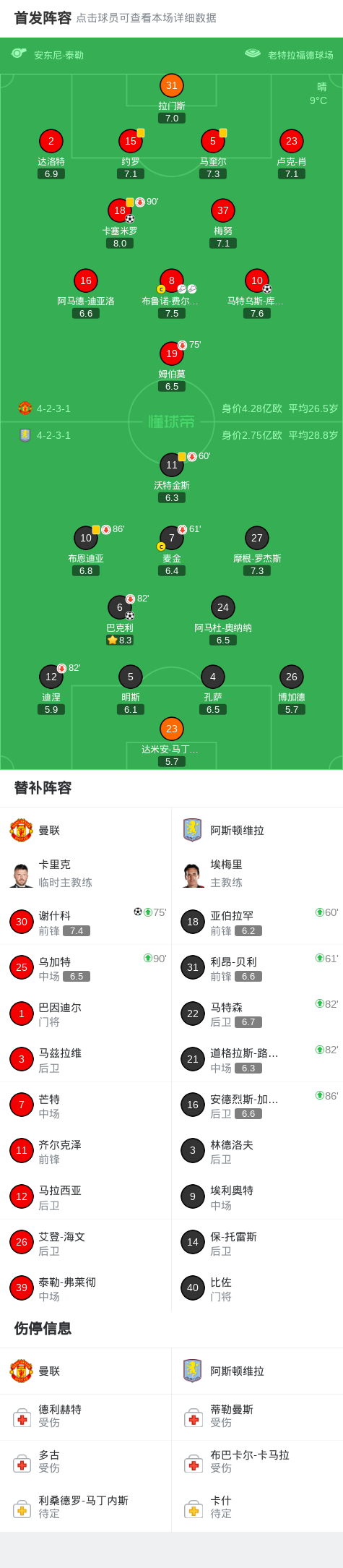 剑南春丨曼联3-1维拉,B费两助攻,卡塞米罗、谢什科破门